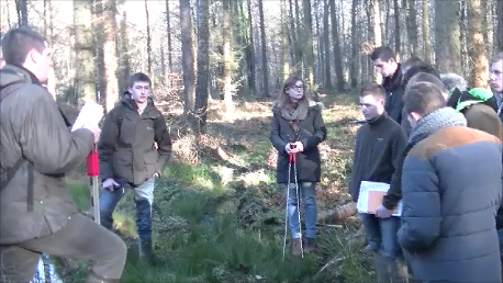 Dans une autre journée de la même semaine, durant une après-midi, nous nous sommes rendus avec la classe concernée ainsi que leur professeur principal en forêt d'Eawy et plus particulièrement au massif du Croc afin d'appliquer directement sur le terrain la théorie vue en salle. Cette demi-journée s'est déroulée en deux temps : Pour commencer, nous nous sommes rendus sur une parcelle type repérée auparavant dont un grand nombre de facteurs IBP sont présents et dans laquelle nous avons mis en place une placette d'un hectare afin de réaliser un relevé par parcours. La classe a ensuite été divisée en quatre groupes accompagnés chacun d'au moins un étudiant organisateur afin de les guider plus facilement dans leur démarche d'évaluation de l'IBP et de répondre à leurs éventuelles questions. Une fois que chaque groupe a eu terminé ses relevés, nous avons mis en commun les résultats en juxtaposant les différents diagrammes “radars” puis avons réaliser une correction.