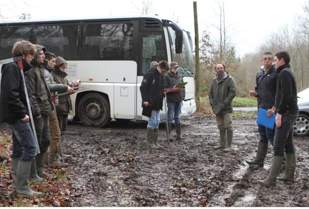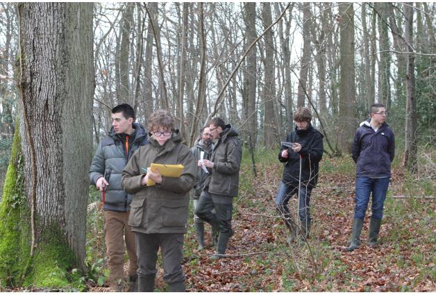Mercredi 3 février 2016, 2 étudiants de BTSA « gestion forestière » ont proposé aux élèves de la classe de Terminale STAV du lycée de Mesnières, une session d'apprentissage de la biodiversité à travers la mise en place d'un IBP (Indice de Biodiversité Potentielle). A travers différents bio-indicateurs liés à la forêt, sa gestion et son environnement, l'IBP permet d'estimer le potentiel et surtout d'en tirer quelques règles de gestion respectueuses de l'environnement. Après une courte présentation en salle, les élèves ont été invités à réaliser deux évaluations dans le chêne, chez Mr Coppinger, propriétaire forestier privé. Les échanges entre élèves et l'accompagnement des plus jeunes par les étudiants de BTS G.F, sont toujours des expériences positives. Un grand merci aux élèves de BTSA d'avoir participé à notre formation et de nous avoir éclairés sur la poursuite d'études en BTSA « gestion forestière ».