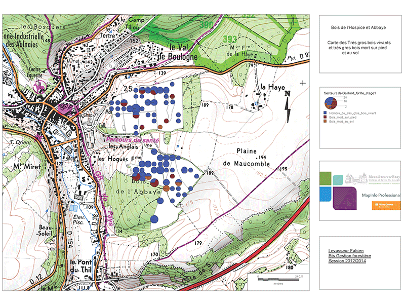 Cartographies thématiques (bois morts , valeurs des facteurs de l'IBP,...) en utilisant les méthodes par parcours en plein ou par transects