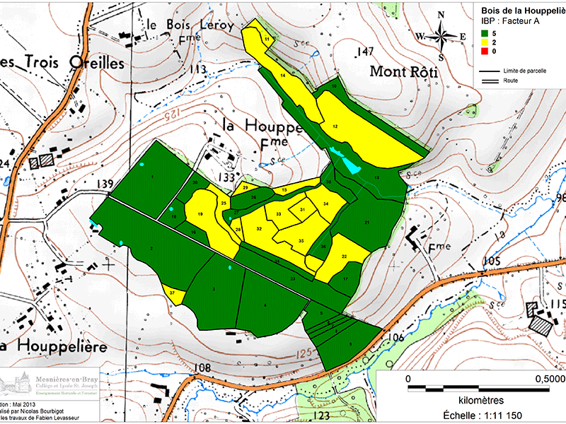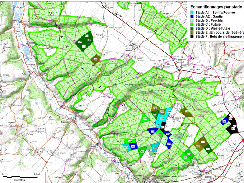 Un réseau de parcelles illustrant les différents stades de la futaie régulière (Hêtraie-chênaie à Jacinthe) a été mis en place en forêt domaniale d'Eawy pour y étudier l'évolution de l'IBP le long du cycle sylvicole.